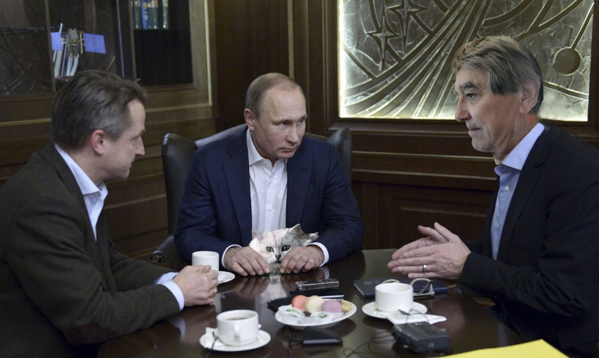 La présence du chat « à la Blofeld » suggère, que dans le rêve, Poutine est assimilé à un chef mafieux.