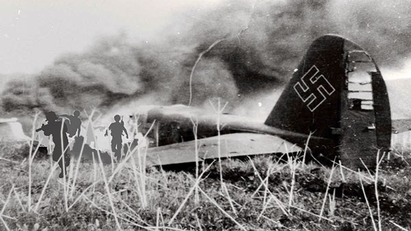 Atteint par un de ces projectiles ou victime d’une défaillance mécanique, l’un des appareils s’écrase dans le parc du château ou nous nous trouvons. Toute la partie avant est broyée et en flammes mais de la partie arrière du fuselage sortent en courant des soldats hurlants qui nous mitraillent sans interruption. Presque tous les officiers anglais sont touchés et… sans transition je bascule dans la deuxième partie du rêve.