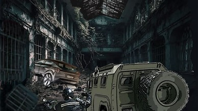 Nous (moi et deux ou trois autres personnes) sommes poursuivis par des motards et un camion qui ressemble presque à un semi-blindé de l’armée – Mais il ne s’agit pas de l’armée mais d’un groupe de malfrats. Nous avons été témoins, involontairement, de leur attaque contre un convoyeur de fonds, et ils veulent nous éliminer.