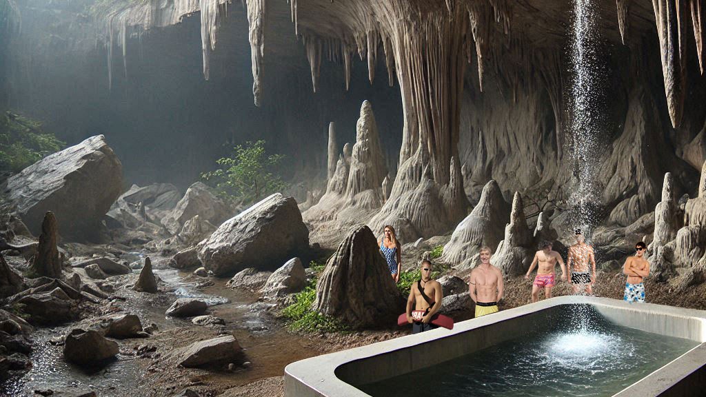 Le blindé poursuit sa route jusqu’à des hauteurs avoisinantes et nous découvrons une grotte au toit effondré au fond de laquelle, parmi les débris de roches, se trouve une grande baignoire rectangulaire construite en terre ou en béton dans laquelle coule un mince cascade. Super ! – dit le chef de l’escouade – On vas pouvoir prendre un bain. Tous au maillots !! …et je me réveille…