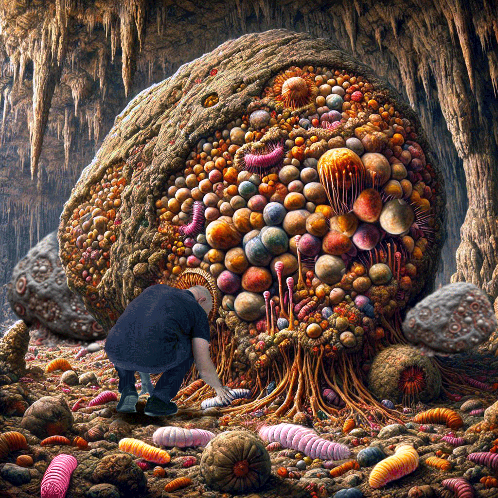 D’énormes roches, d’apparence minérale, mais en même temps vivantes, semblent être là depuis des centaines de milliers d’années. Elles sont percées d’alvéoles d’où sortent des excroissances pareilles à des œufs sur le point d’éclore. Et ce sont réellement des œufs
