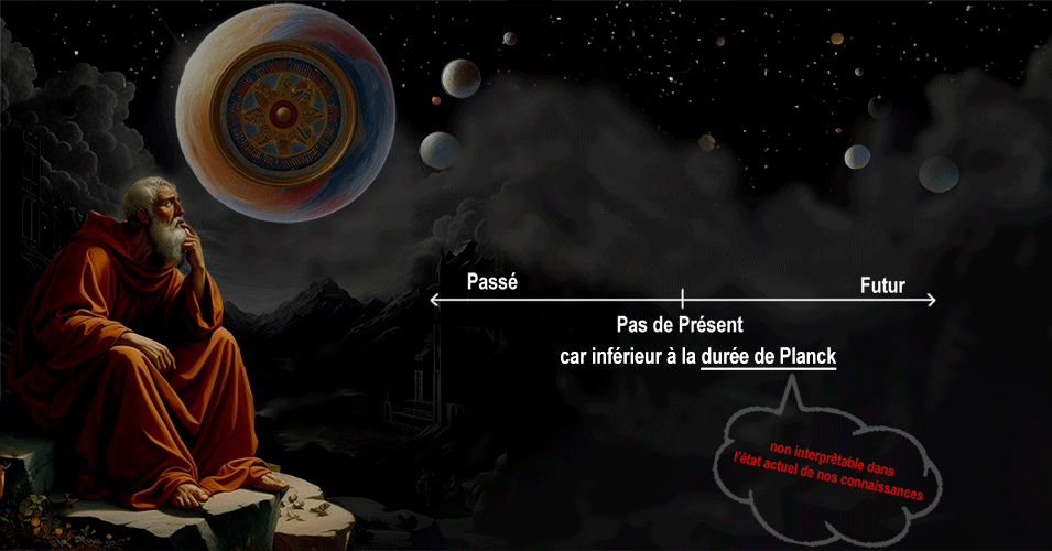 Mais, selon la théorie, le temps est discontinu, divisé en quantum, séparés les uns des autres, évoluant dans une ou plusieurs dimensions qui ne nous sont pas physiquement accessibles.